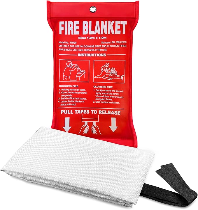 39.3x39.3In Large Fire Blanket, Fiberglass Fire Emergency Blankets, Suppression Flame Retardant Fireproof Survival Safety Blanket for Kitchen Home Car Office Warehouse School Fireplace 1Pack
