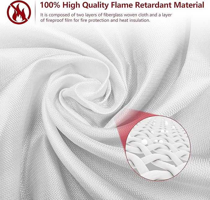 - [Safe & High Quality]: 100% quality material, fire blanket consists of two layers of woven glass fiber fabric and an inner layer of flame retardant film. Emergency flame retardant cover Safety cover isolates high temperature, heat source and flame. It has reached the EN-1869:1997 standard and can isolate temperatures up to 1076 ° F or 580 ° C.