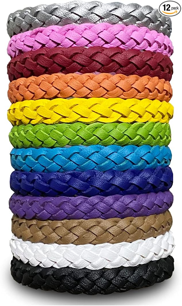 12 Pack Mosquito Repellent Bracelets, Solid Color Individually Wrapped Leather Insect & Bug Repellent Wrist Bands for Kids & Adults Outdoor Camping Fishing Traveling