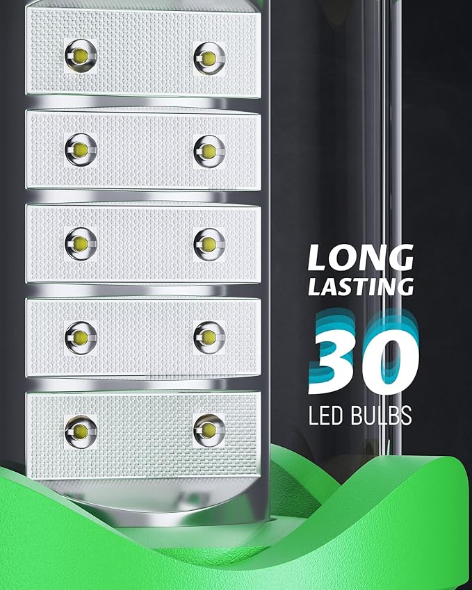 - ULTRA BRIGHT & SAFE: Designed with 30 energy efficient LED for 360 degree lighting (97 sq.ft coverage), the latest LED technology features 150 lumens, emits softer and brighter; Use 3 AA batteries (not included), is safe to touch at low temperature