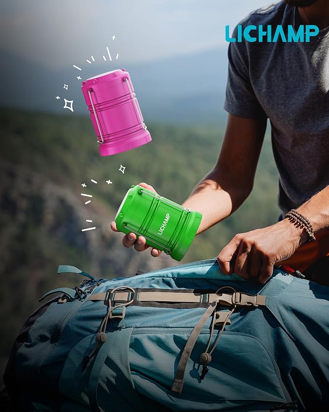 Lichamp 4 Pack LED Camping Lanterns, Battery Powered Camping Lights LED Collapsible Flashlight Portable Emergency Supplies Kit, A4DG