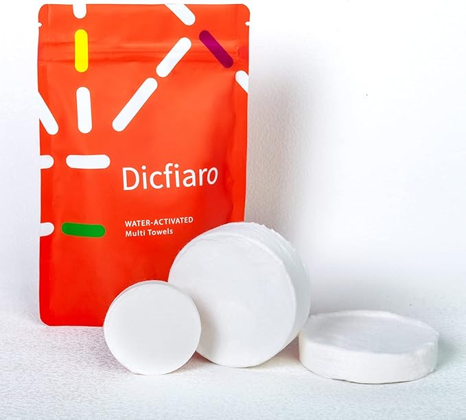 - Super soft touch-Dicfiaro compressed towels are made of the highest quality cotton, light weight and soft, super absorbent, they can be used well as travel towels or sports towels. They are also ideal for beaches, travel, camping, swimming, backpacking, gyms and business trips.