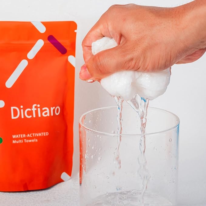 - Easy to use-Dicfiaro compressed towel can be used with a glass of water. Cold water and hot water, it’s up to you. Can be reused many times.