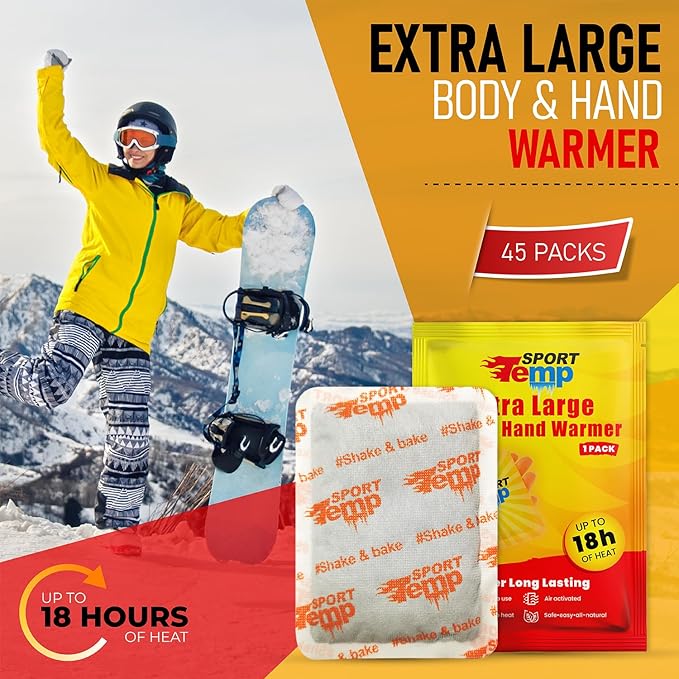 Large Hand & Body Warmers - Up to 18 Hours of Heat, Super Long Lasting - Easy, All Natural - Air Activated, for Body, Hands & Toes - Odorless Hot Hand Warmer - Sport Temp