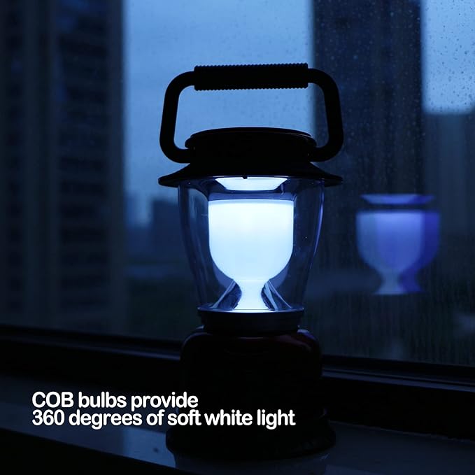 - 【DIMMABLE BRIGHTNESS】 - Cut through the darkest of nights and survive an emergency storm. Light up an entire family-filled room or tent with low consumption battery powered LED bulbs to save energy. These 360 Degree 120 Lumen Camping Lanterns use the best in portable brightness technology with zero compromise. (AA batteries sold separately)