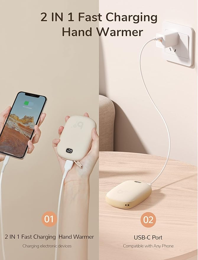 - 【Warming Winter Gifts】Great gift for Christmas, Birthday, Anniversary, Thanksgiving Day, Valentine’s Day, etc. Buy it now to get: (1) a Hand Warmer (2) a Cloth Bag; (3) a USB-A to USB-C Cable; (4) a User Manual; (5) a Lanyard; (6)Timely and considerate Customer Services.