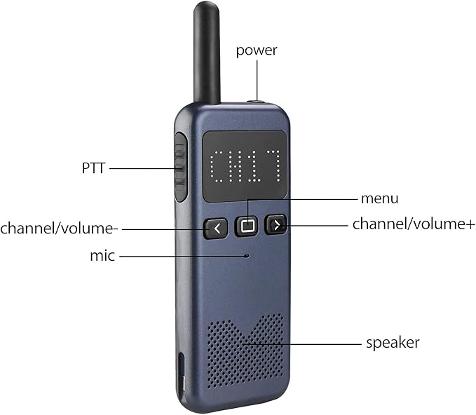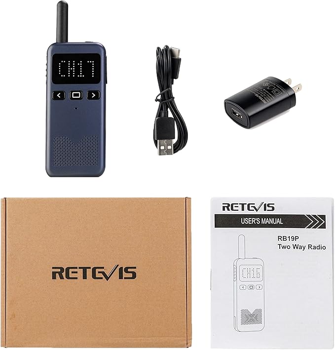 - Ultra-slim mini walkie talkie; small size makes the RB19P two-way radio less bulky than most other two-way radios; it's easy to slip into a shirt pocket or hang on a lanyard