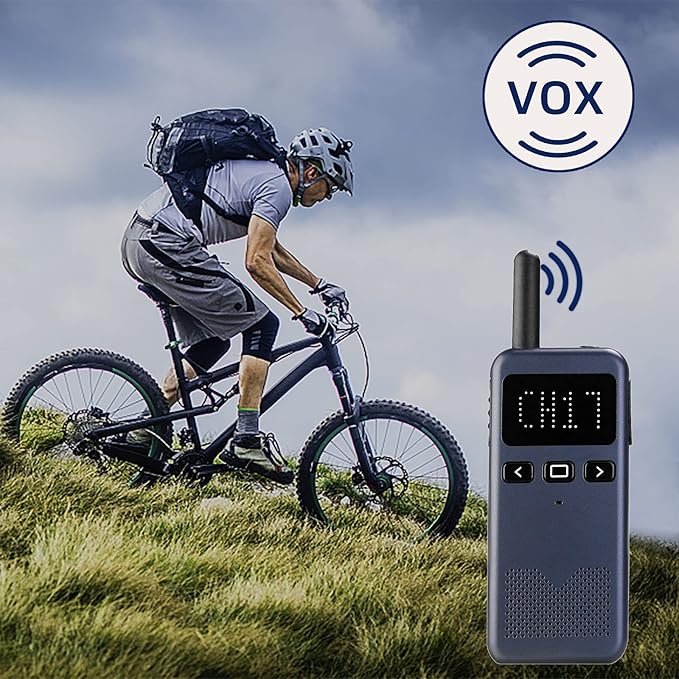 - Portable walkie talkie; 9 levels of VOX; transmission through your voice; no need to press PTT to speak (VOX level can be modified by firmware)