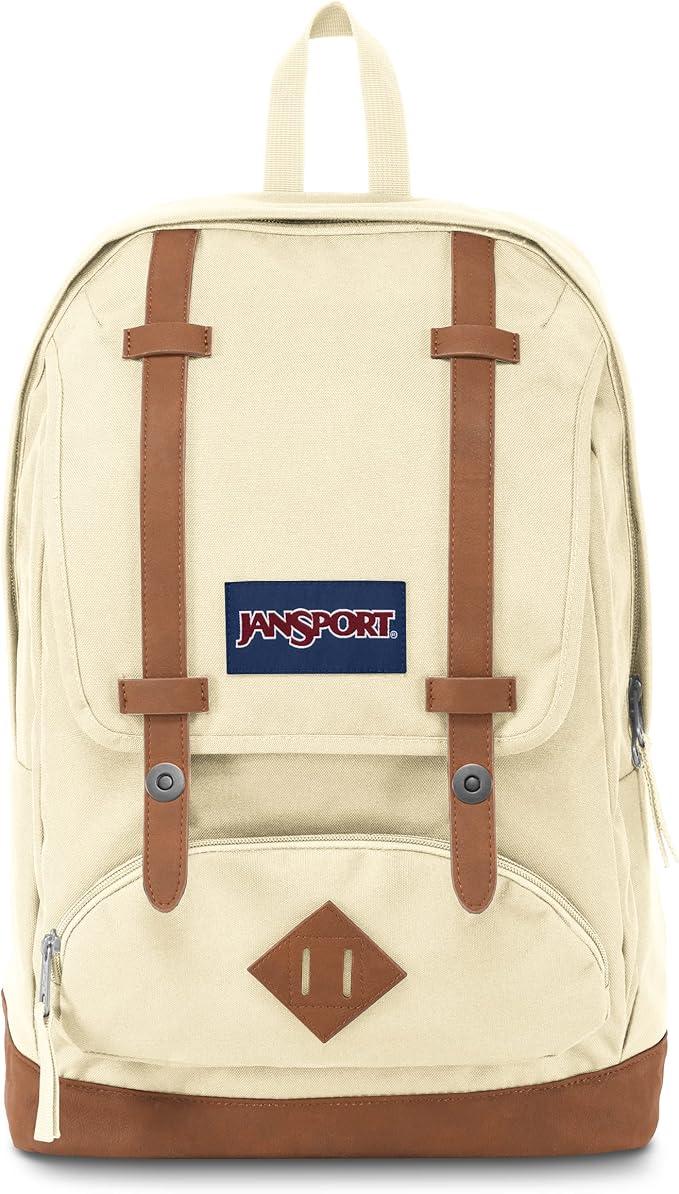 JanSport Cortlandt Laptop Backpack, Coconut, 15” Laptop Sleeve-Synthetic Leather Shoulder Computer Bag with Large Compartment, Padded Straps- Rucksack for Men, Women