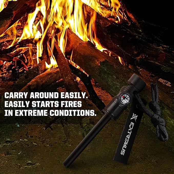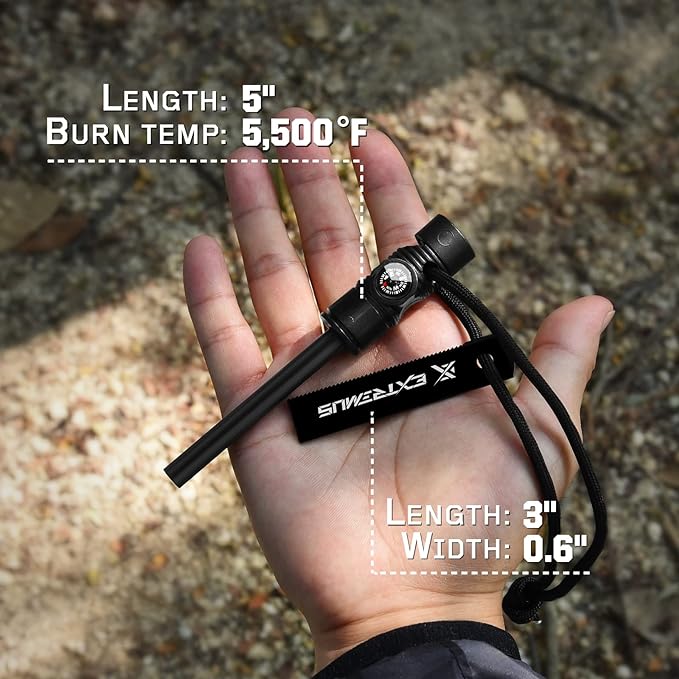 Extremus 6-in-1 Magnesium Fire Starter with Striker, High Temp Magnesium Rod