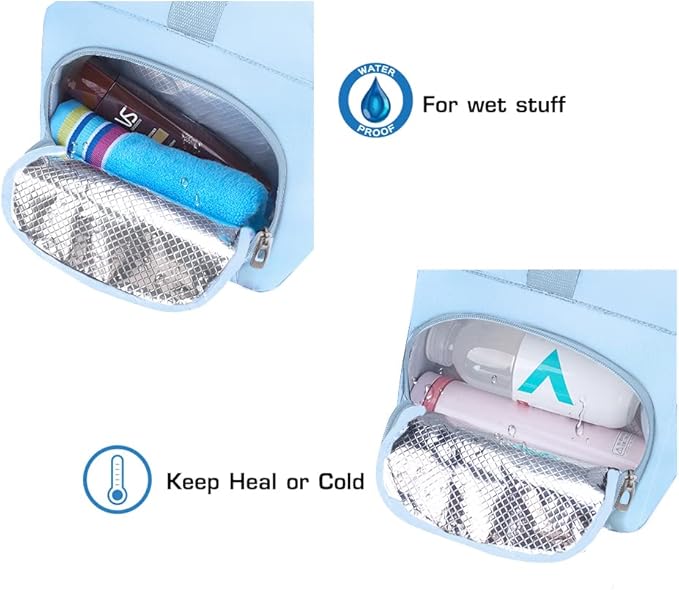 - Well-Designed Construction: Rotot sports bag’s insulated pocket is made from 13S aluminum foil which can keep drinks and wet towel at the perfect temperature for hours and be water resistant. Built-in shoe compartment with an air hole keep your shoe storage private and fresh. Other spacious pockets are easy to organize your belongings, like keys, cards, phone charger, speakers, umbrella, shampoo and body wash, etc.
