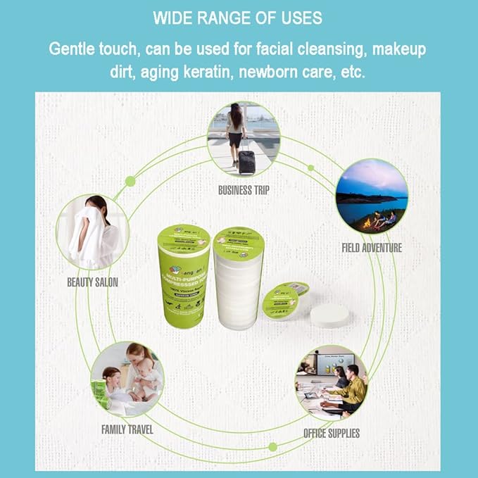 - 【WIDE APPLICATIONS】Our disposable towels are versatile and can be used for facial cleansing, camping,travel,makeup removal,and more.They're perfect for public restrooms,beach,hiking,yoga,sports,gym,hotels,salons,bathrooms,offices,road trips,and business occasions.They also can be used as Quick Dry Towels, coin tissues,wet ones hand wipes.