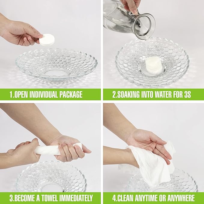 - Material Feature : REUSABLE DISPOSABLE COMPRESSED TOWELS TABLETS Soak them in water for 3 seconds to become a stronger towel REUSABLE DISPOSABLE COMPRESSED TOWELS TABLETS Soak them in water for 3 seconds to become a stronger towel