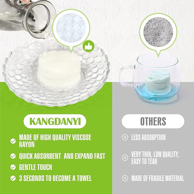 - 【DUAL-PURPOSE】Our compressed face towels can be used wet or dry, making them perfect for any situation. Soak them in water for 3 seconds to create a stronger, cooling towel that's perfect for hot days. They're also super absorbent and quick-drying,bulk washcloth travel size,making them ideal for travel.