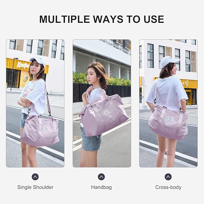 - ✅【Large and Multiple pockets Overnight bag】This overnight bag has six multiple internal and two external organizational pockets,which ensure you have a place for everything.The dimensions of the overnight bag for women are 10.63"*21.65"*7.09".You can carry it onto an airplane. Large storage space for a clothes for short trip. It has a capacity of 30L and can hold 6 to 8 pieces of summer clothes,Cosmetics, toiletries, wallets, keys, earphones, mobile power, mobile phones, files.
