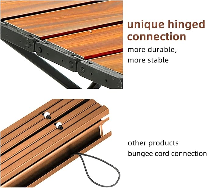 - NEW UPGRADE: Our new upgraded high quality folding table tops feature a unique hinged connection, compared to other folding table tops with a bungee cord connection, more durable, more stable