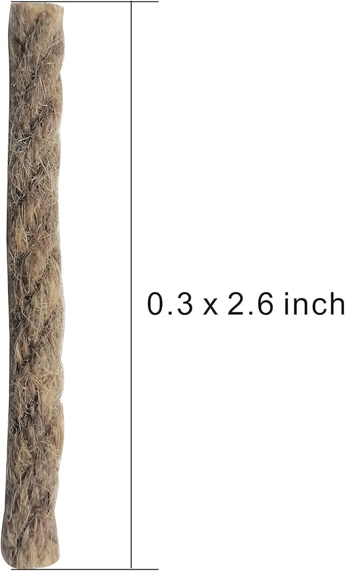 - The wax infused jute rope is 0.3 x 2.6 inch, unwind the braided ropes and fray them by twisting the fibers a part until they are very fine and fluffy. Place tip of ferro rod or match close to frayed tinder rope so the sparks fall directly onto them, it works in all weather condition.
