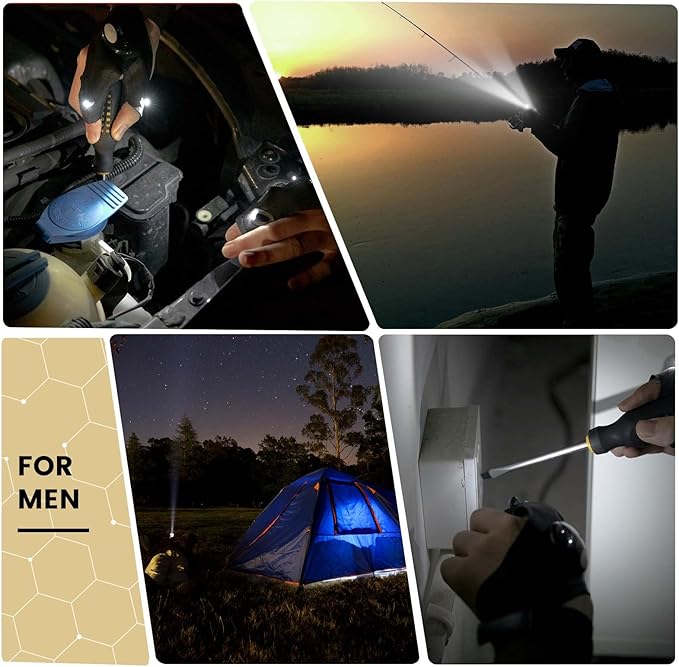 - 🎁【Gifts for Men/Dad】 - The flashlight gloves give you more freedom to focus on work. The waterproof gloves with a flashlight on each hand illuminate for you and work comfortably. The amazing gifts for men in your life!