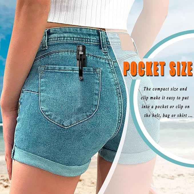 - 【Removable Clip】The removable pocket clip is convenient for you to clip it on belt, bag, shirt or pants pocket when carrying.It can also be removed and installed reversely, then clamped on the cap as a cap lamp(for the short one only).