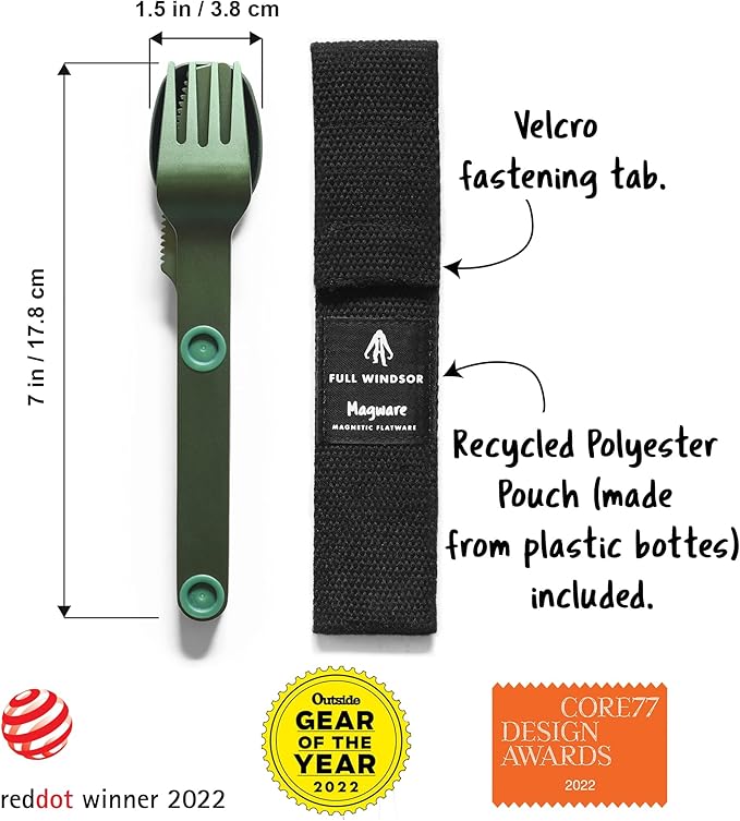 - COMPACT & MAGNETIC TRAVEL UTENSILS SET: The FULL WINDSOR - MAGWARE utensils combine portability with style. Featuring a magnetic stacking design, these outdoor flatware utensils are perfect for camping, kids’ lunch boxes, and on-the-go dining, offering convenience and elegance in one sleek package.