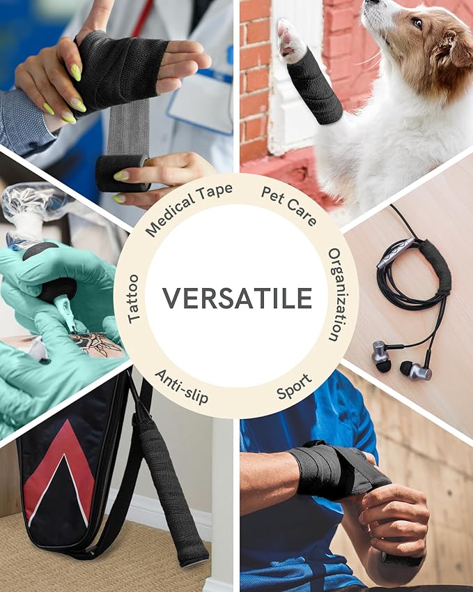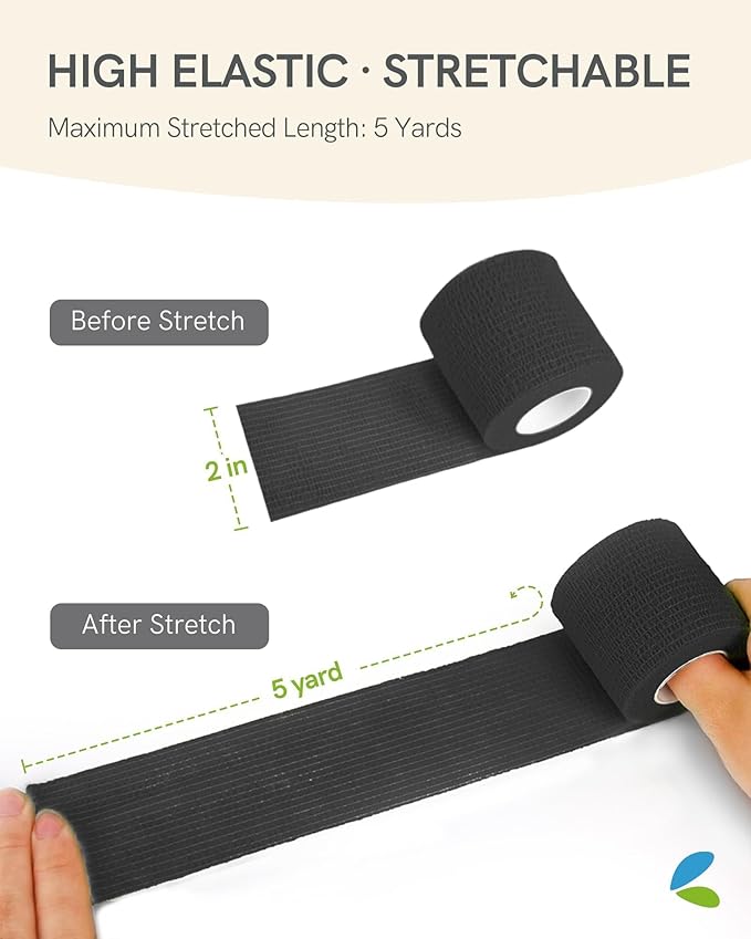 - Versatile in Black: Ideal for first aid, tool wrapping, or décor, our black self-adhesive bandage combines utility with style.