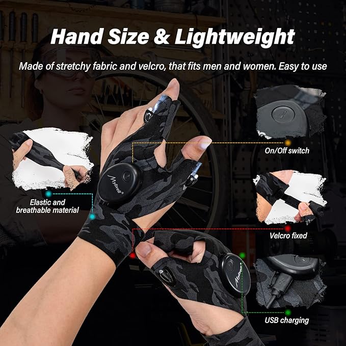 - Practical Finger Flashlights Glove Gift- This flashlight gloves are pretty useful gift for dad fishing to working on cars from early morning or other tight places where light is needed, doing electrical work. It's also a practical present for mother running or working, boy gifts for DJ worker guys. They will totally help you.
