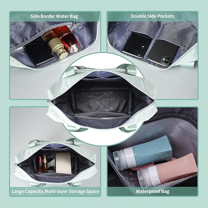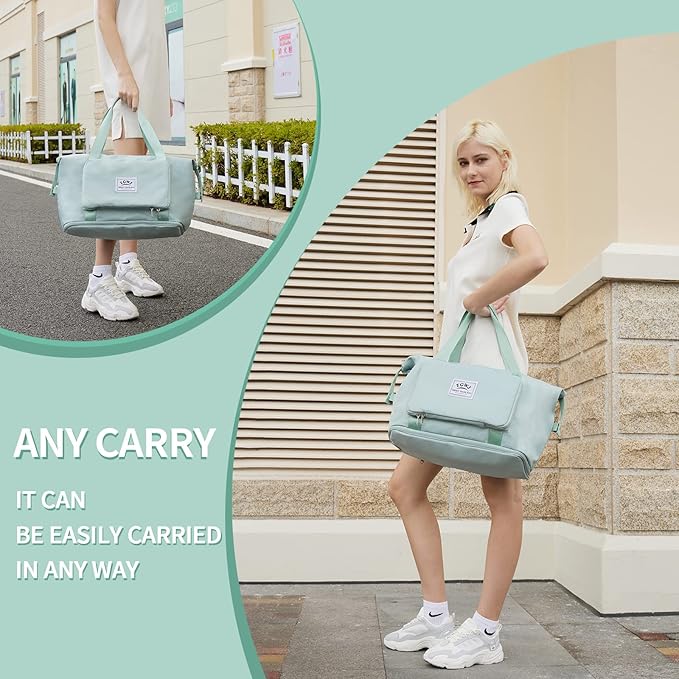 Expandable Travel Duffel Tote Bag - Foldable Overnight Weekender, Carry-On, Swim & Gym Bag - Fits Spirit Airlines Personal Item Size - Lightweight, Waterproof & Durable with Trolley Sleeve,Green