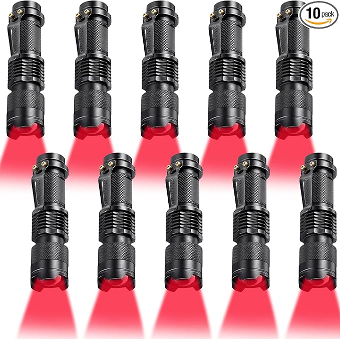 Honoson 10 Pieces Red Flashlight LED Single Mode Light One Mode LED Torch Scalable Red Light Flashlight for Astronomy Aviation Night Observation