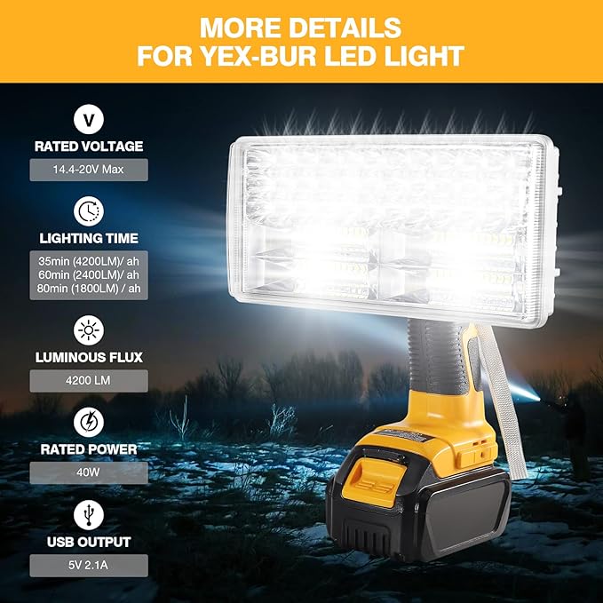 YEX-BUR 40W 4200LM LED Work Light for Dewalt 20v Battery, Handheld Flashlights Spotlight Floodlights for Men for Car Repairing, Camping, Emergency