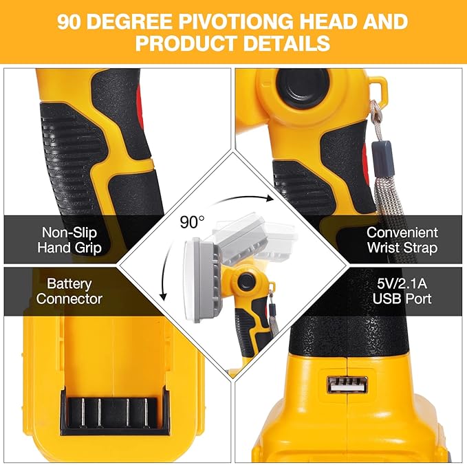 - FLEXIBLE DESIGN: You could rotate the lamp head from 90 degrees to 180 degrees providing versatility for lighting work surfaces. Light to be projected in multiple directions. Convenient wrist strap makes it easy to carry with you.