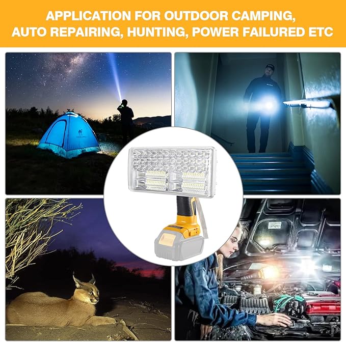 - WIDE APPLICATIONS: Outdoor spotlight 20v can be used in darkness jobsite work area, baseroom, underground garage, hiking, camping, hunting , exploring, barbecue, walking dogs, and emergency lights for home power failure etc.