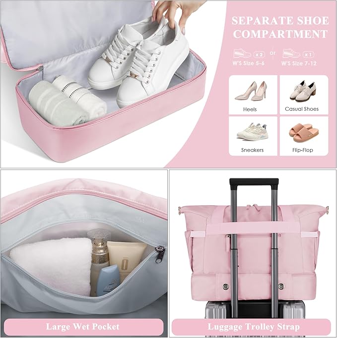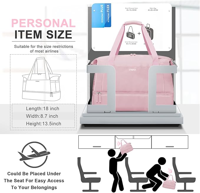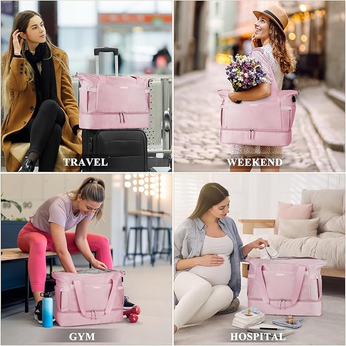 - Wide Application Gym Bag:A perfect choice for carrying all your gym and travel essentials. Use it as an airplane personal item bag, luggage bag, gym sports bag, weekend bag, carry-on bag, beach bag. This women's gym bag is suitable for both indoor and outdoor sports, such as travel, sports, weekend trips, yoga, gym, beach, business or other daily use