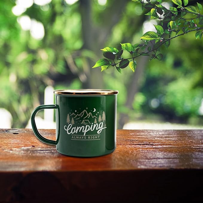 - 【 2 COLORS OPTION 】:This cup set is available in 2 colors- Green and White. Mug Set:1*forest green mug,1*creme white mug. This camping mug set is sure to bring back good memories of camping as a kid. It also can be a good gift for Valentine, Christmas, and other holidays.