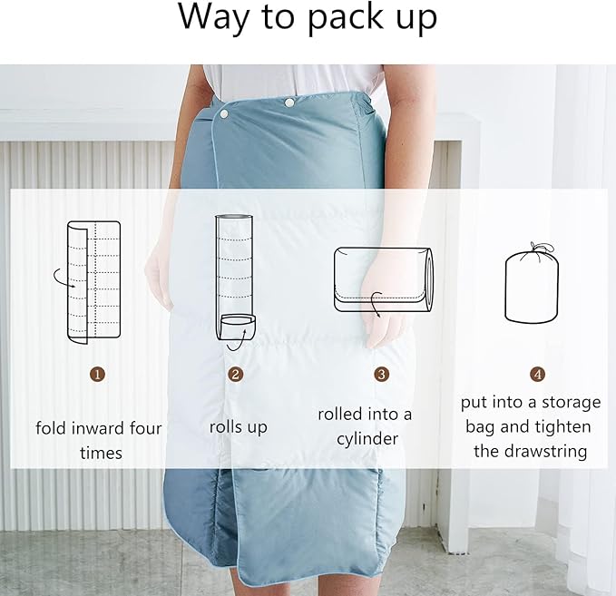 - COMFY BLANKET: A piece of storage bag is included. The cover of soft the down blanket is made of nylon and it’s filled with Selected down and feathers. This warm and packable blanket with creative design is ideal for many situations