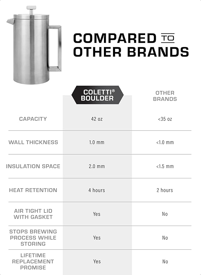 COLETTI Boulder Camping French Press (An American Press) - Large Insulated French Press Coffee Maker – 42 oz