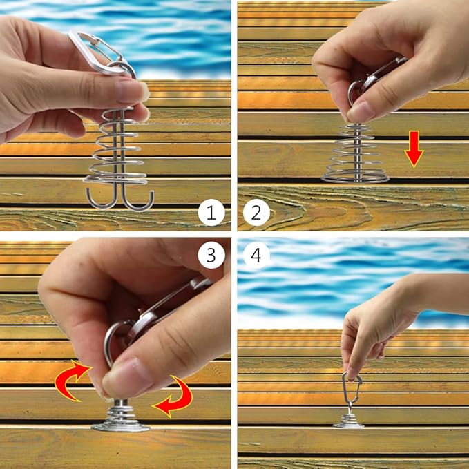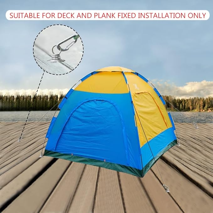 - 【Easy to Install & Remove】 Easy way to secure stuff without drilling into decking. Insert the anchor into the board slot, rotate to fix and connect it to the tent. Only for wooden platform or deck planks.