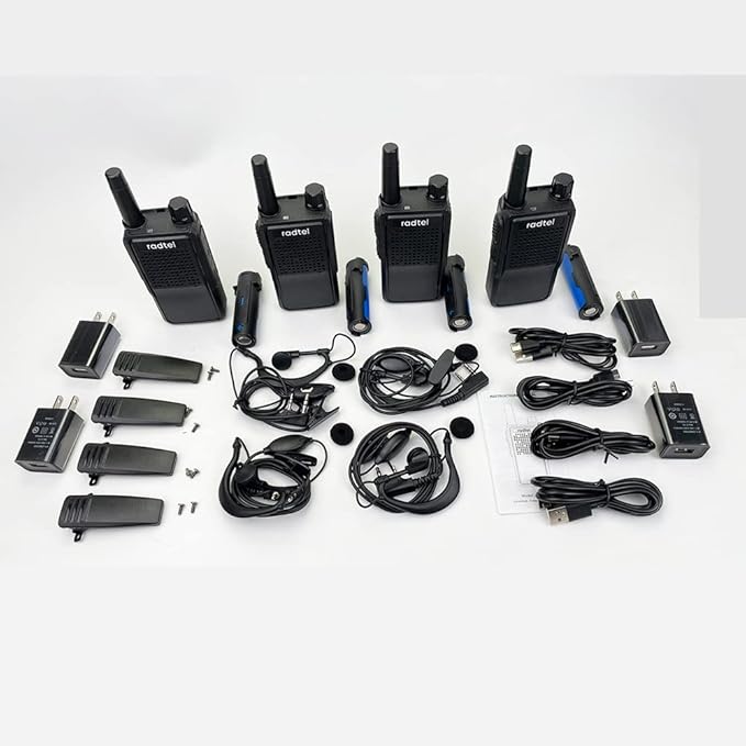 - Included Components : 4 Walkie Talkies, 1 USB Charging Cable