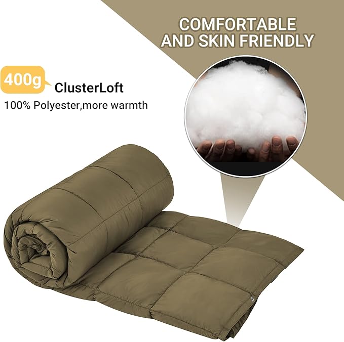 - 【DOWN ALTERNATIVE WARM BLANKET】: The travel down alternative blanket is filled with hypoallergenic KingLoft down alternative, a state-of-the-art fiberfill that has the feel of authentic goose & duck down without the feathers, poking or allergies.
