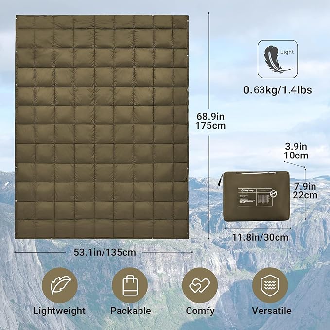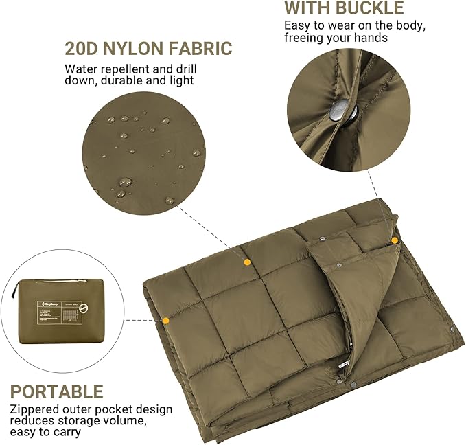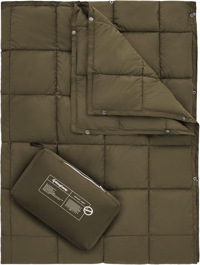 KingCamp Camping Blanket Lightweight, Multifunctional Warm Puffy Outdoor Blanket with Snap Button, Water Repellent, Packable, for Travel, Airplane, Hiking, Picnic