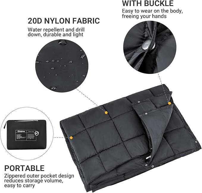 KingCamp Camping Blanket Lightweight, Multifunctional Warm Puffy Outdoor Blanket with Snap Button, Water Repellent, Packable, for Travel, Airplane, Hiking, Picnic
