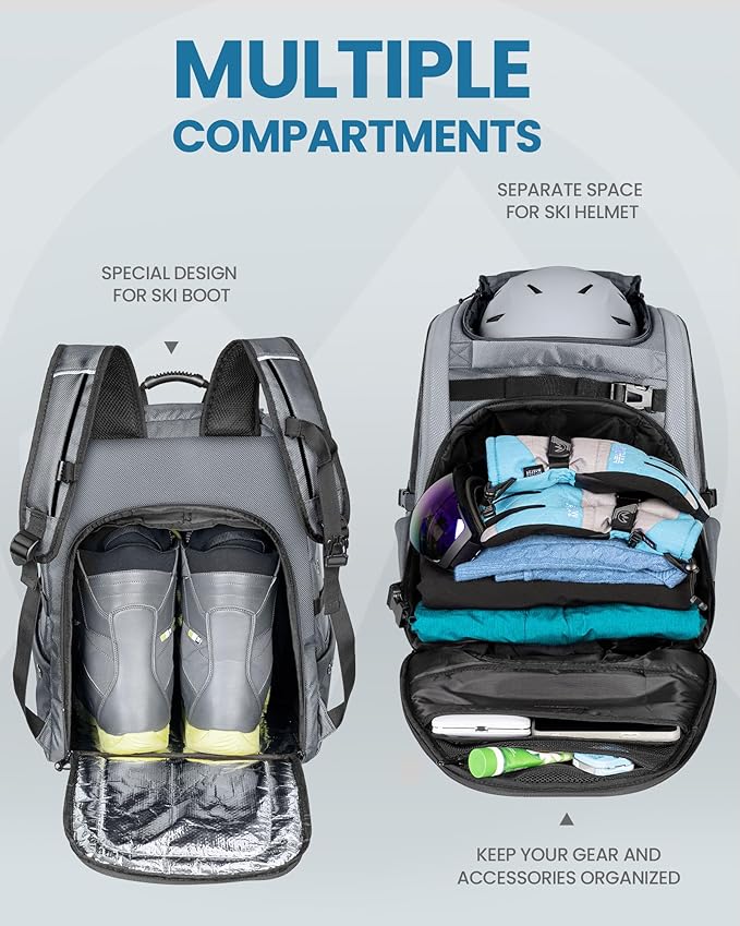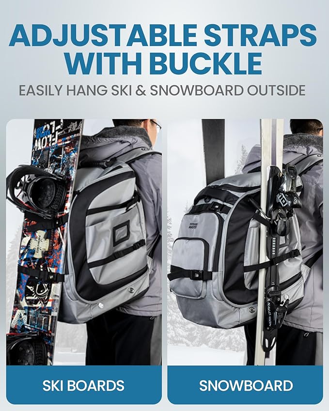 OutdoorMaster Ski Boot Bag, 65L Waterproof Ski Snowboard Boots Shoulder Pad Skiing Backpack for Helmets, Goggles Men & WomenB09KXX9DLT