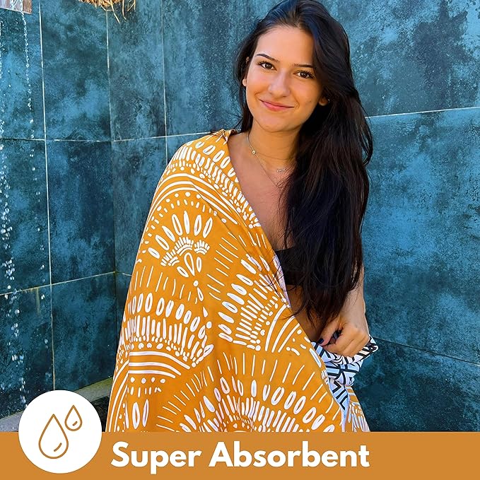 - Own the beach with our stunning 2 sided prints. Microfiber is a thin, ultra absorbent material. Super convenient to pack and carry. Maximize space in your luggage and closet with these compact and lightweight travel towels