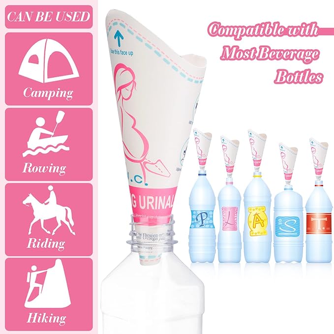 - Nice compatibility: designed with small outputs, the womens camping pee funnel are compatible with most beverage bottles; The girl peeing funnels can be nice tools for your long road trip, making your trip more relaxed and comfortable