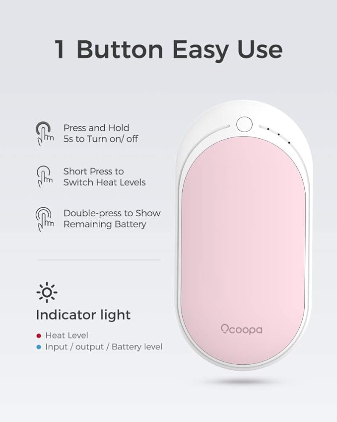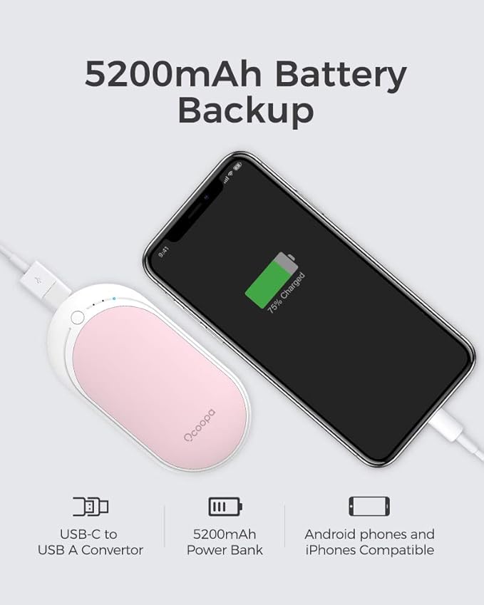 - Long-Lasting Battery: With a 5200mAh lithium rechargeable battery and USB-C charging port, you can use your hand warmer for hours and even charge your electronic devices on the go.