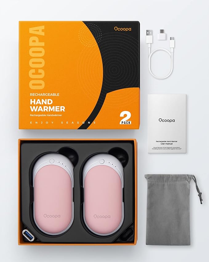 - 2 Pack Ocoopa hand warmers rechargeable, one for each pocket when you are doing outdoor sports, hunting, golf, dog walking, camping, or share with your friends or family.