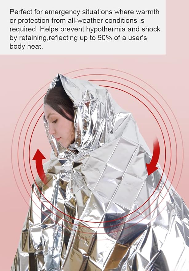 - EMERGENCY USE - Perfect for emergency situations where warmth or protection from inclement weather conditions is required. Helps prevent hypothermia and shock by retaining up to 90% of a user's body heat. Emergency blanket can be use with an emergency shelter, emergency sleeping bag, emergency bivy, or other survival gear to provide you extra safety.