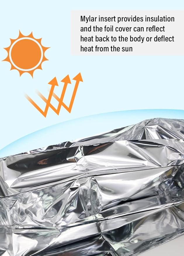 - MANUFACTURED FROM THE BEST WEATHERPROOF MATERIAL - Mylar insert provides insulation and the foil cover can reflect heat back to the body or deflect heat from the sun
