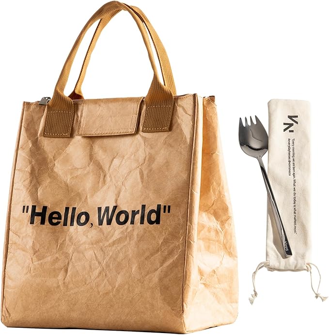 VonNova Insulated Lunch Box for Women, 7L Capacity, Leakproof Lunch Tote Bag, Durable Lunchbox made from Tyvek Material, Adult Cooler Bag for Work, Picnic, Travel and more (Hello World)