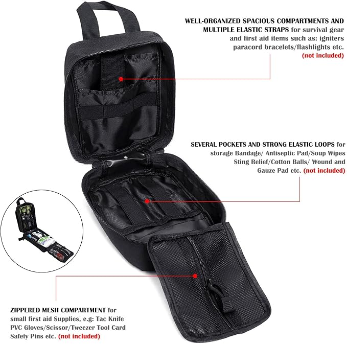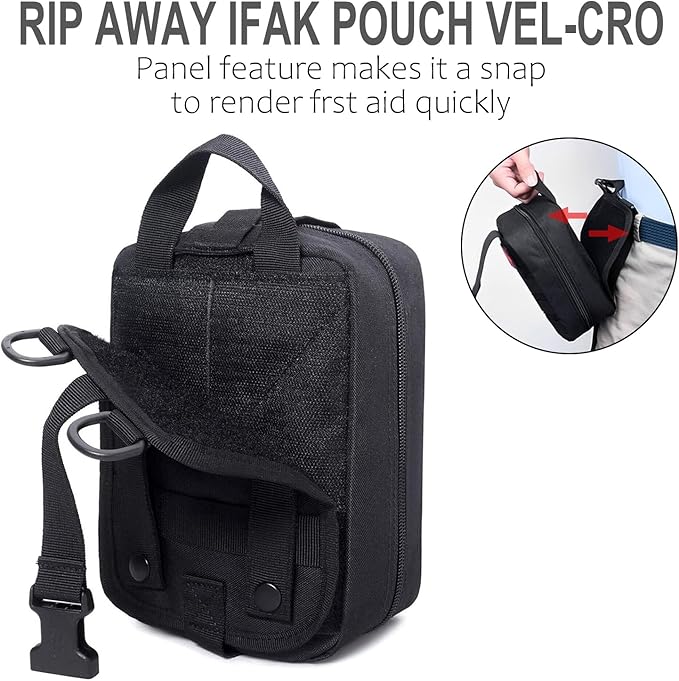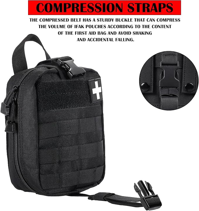 - Tactical first aid bag is military grade Molle compatible tactical medical pouch, compact IFAK Universal Pouch with elastic straps inside.Perfect for carrying medical supplies(Medical supplies do not included!!!.).