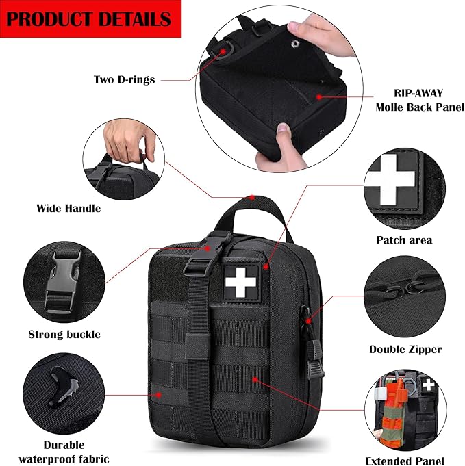 - Great quality:med pouches Made of premium and durable military grade waterproof fabric material and sturdy double stitching, durable MOLLE straps with strong snaps.